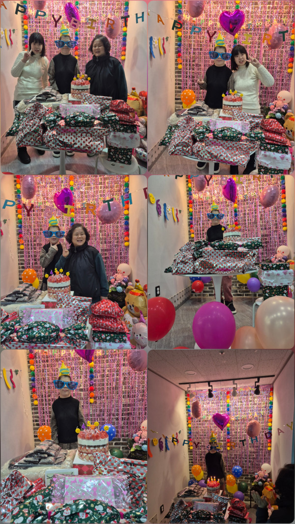 2025.12.29(월)주간활동서비스 1그룹 활동진행 페이지 정보 조회 : 2회 작성일 25-12-29 18:29 SNS 공유 : 본문 오전 이용자 생일파티 준비하러 대형마트 방문하여 케이크 구매하고 마트의 다양한 물건도 구경했어요 생일파티 준비함께하며 축하해주었어요 오후 볼링게임하며 여가시간 보냈어요 이전글2025. 12.29(월)주간활동서비스 4그룹 활동진행 25.12.29 다음글2025.12.29(월) 주간활동서비스 6그룹 활동진행 25.12.29 목록