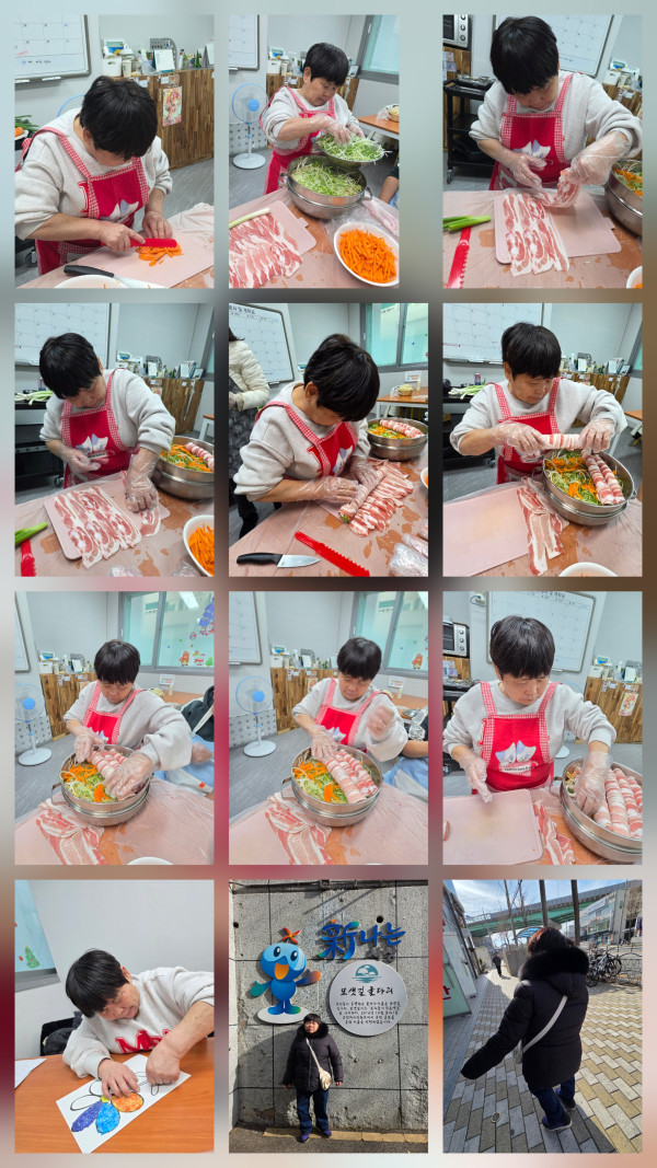 2025.12.31(수) 주간활동서비스 7그룹활동진행 페이지 정보 조회 : 3회 작성일 25-12-31 16:59 SNS 공유 : 본문 오전 요리활동(대패숙주찜) 오후 산책 이전글2025.12.31.(수)주간활동서비스 5그룹 활동진행 25.12.31 다음글2025.12.30(화) 주간활동서비스 7그룹활동잔행 25.12.30 목록
