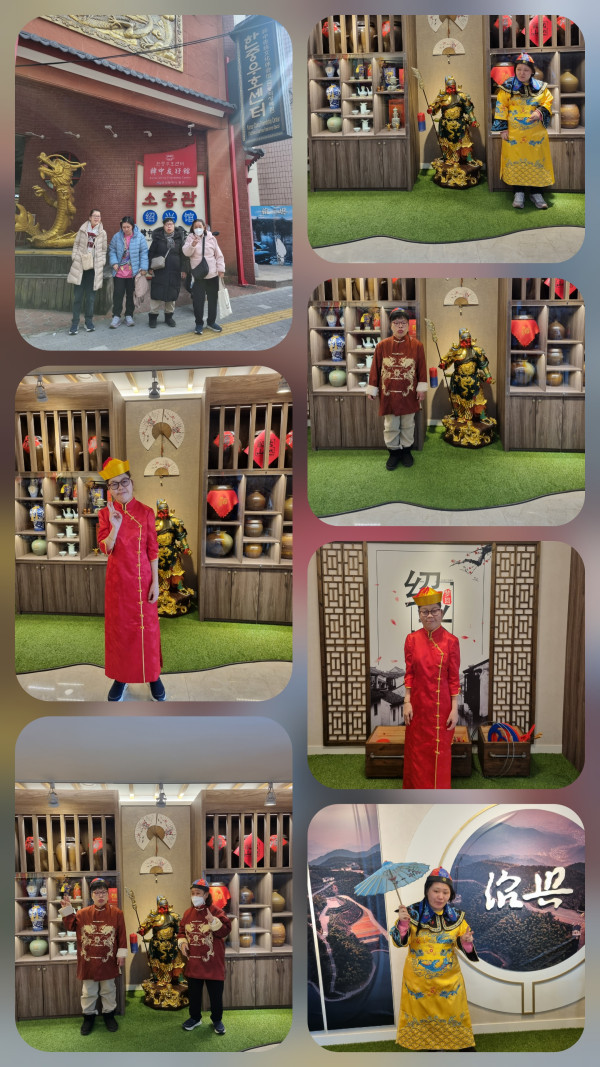 오후에는 한중우호센터에서 중국전통의상도 입어 보고 한복도 입어 보는 체험을 하고 왔어요