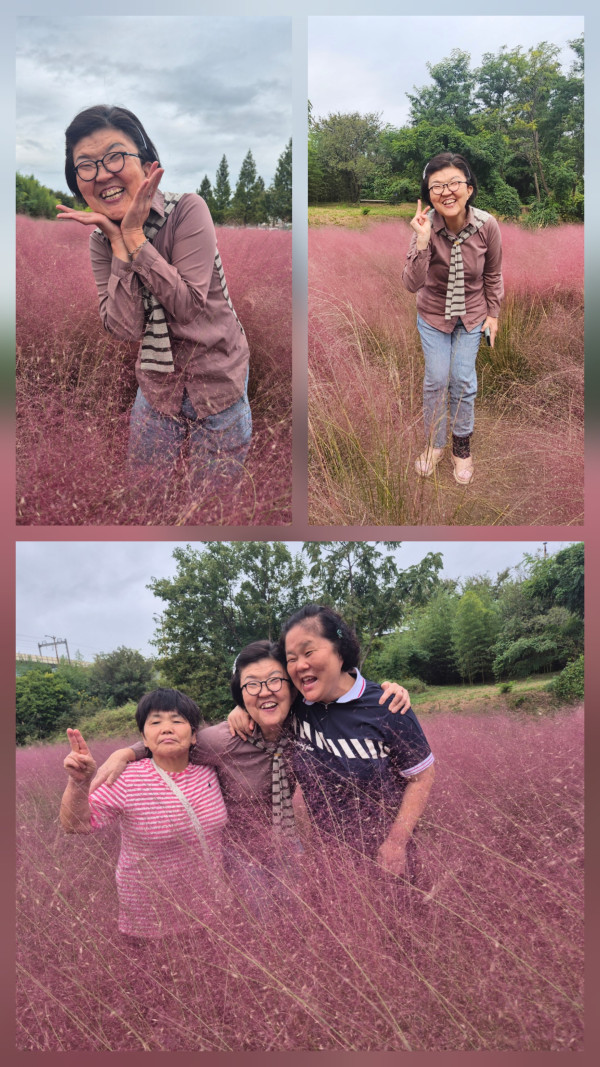 모두 은은한 핑크뮬리의 아름다움에 감탄하며 함께 감성사진도 찍고 서로의 얼굴도 찍어주며 즐거운 시간을 보냈어요♡