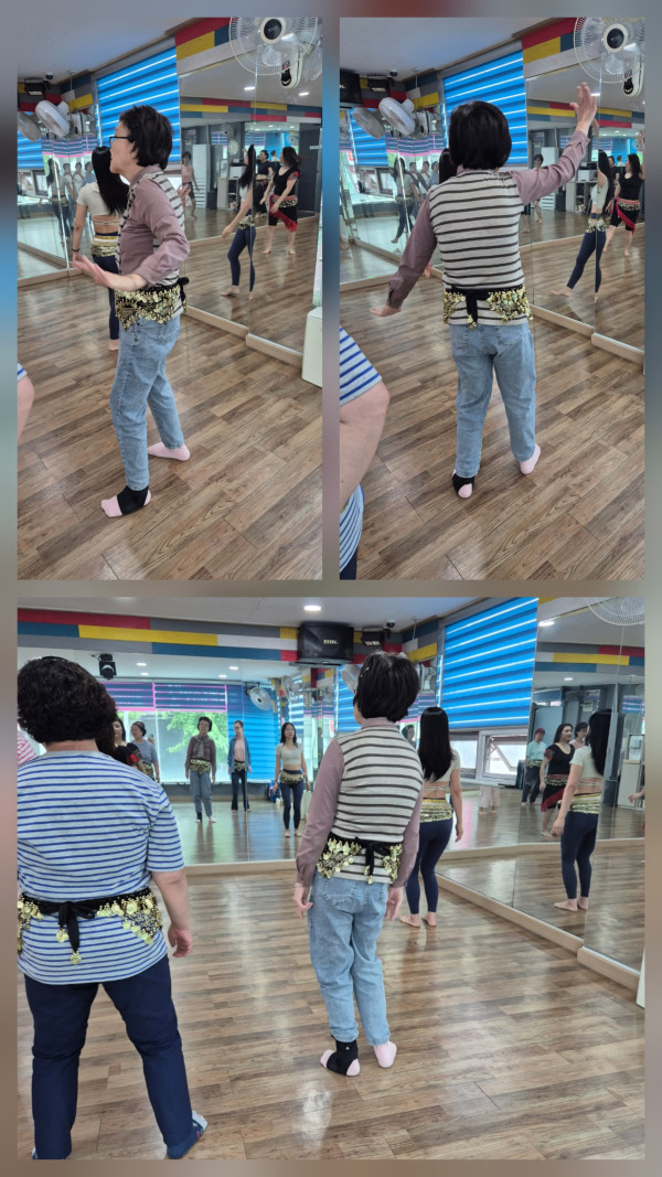 음악에 맞춰 추는 밸리댄스팀은 복부, 허리, 골반등 코어운동을 하며 근력을 키우고 어댑핏팀은 기본 스트레칭과 함께 어깨 근육인 후면삼각근스트레칭을 해주며 승모근의 긴장도 함께 풀어주는 시간이었습니다!
