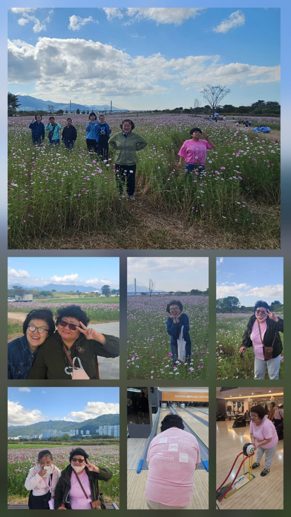 코스모스밭 사이로 멋진포즈를 취하며 단체사진도 찍고 나들이 간다고 서로 가져온 맛있는 간식을 먹으며 도란도란 이쁜 추억 남기고 돌아왔습니다♡