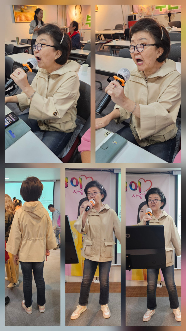 지난주 목감기로 노래를 못불렀던 이용자분은 오늘 아주 좋은 컨디션으로 김연자의 '블링블링'을 열창했고 또 다른 이용자분은 장윤정의 '별' 노래를 불렀어요.