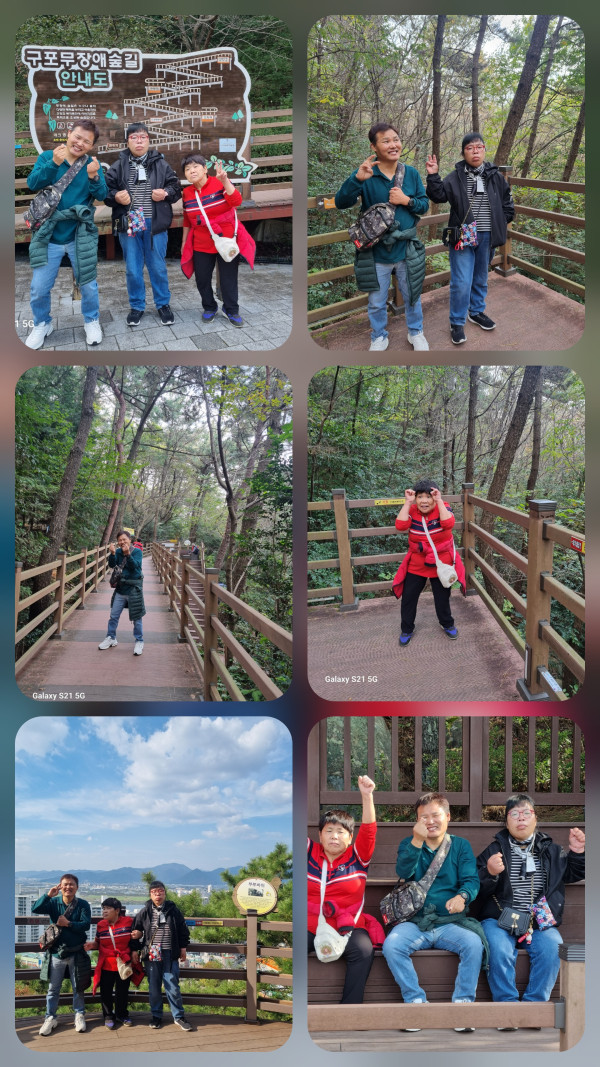 오후에는 각자 간식을 챙겨들고 무장애숲 데크길을 따라 걸어서 하늘전망대까지 올라 갔다 내려왔어요 중간쯤에서 간식도 먹고 시원한 가을바람도 맞고 즐거운 시간 보내고 왔어요
