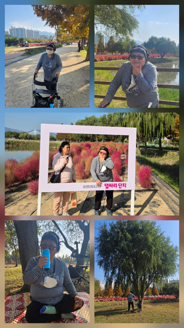 빨갛게 물든 댑싸리와 물억새가 가득한 생태공원으로 놀러가서 산책도하고 돗자리를 펴서 간식도 먹는 시간을 가졌습니다.