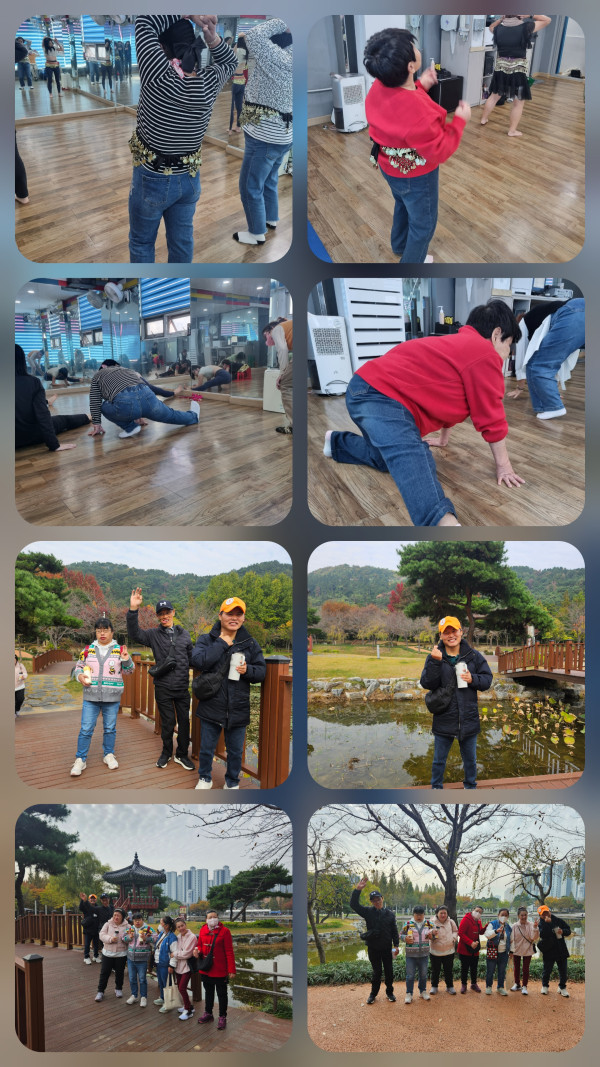 오전 밸리댄스로 몸을 풀고 유연성을 기르며 다른이용자는 양산워터파크공원으로 나들이 나가 공원의 가을을 느끼며 사진도 찍고 왔어요