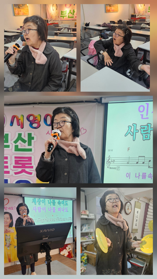 지난 주 감기로 절반의 이용자가 노래를 못불렀는데 오늘은 모두 최상의 컨디션으로 노래를 불렀습니다. 우리 이용자분은 '한잔해'와 '인생아고마웠다'를 열창하며 회포를 풀었어요:) 마지막은 선생님의 노래교실 초창기 이야기를 들으며 지금의 선생님을 있게 해준 특별한 수업을 하며 마무리 하였습니다.