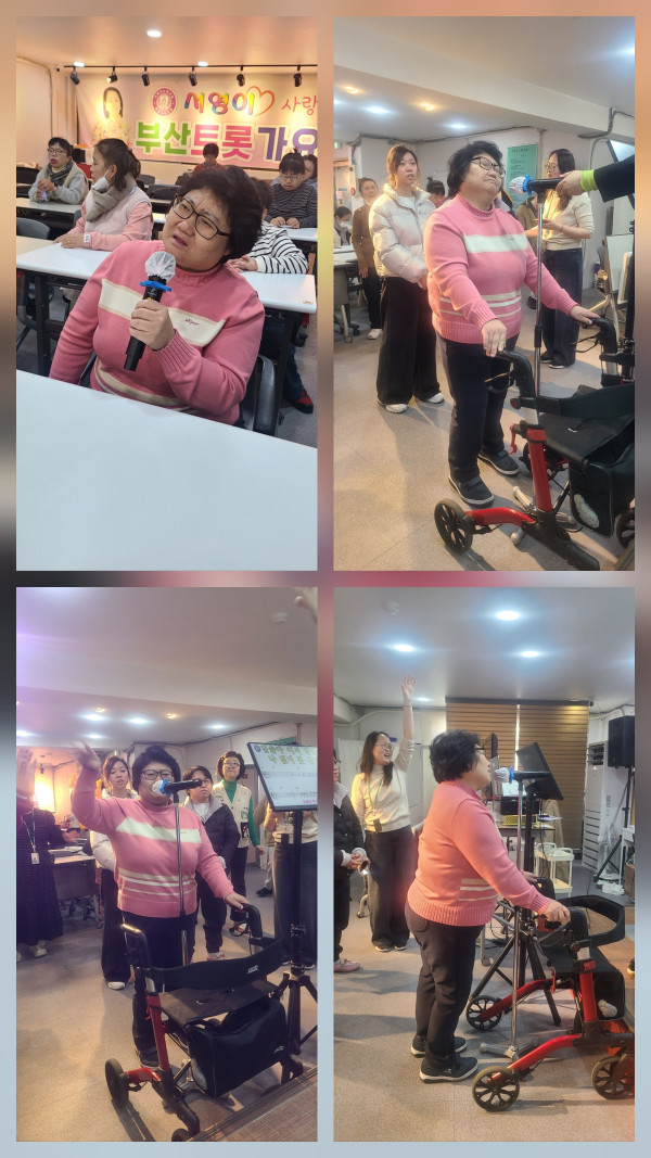 오전 노래교실에서 단체 합창과 독창을 부르며 스트레스를 날려보았어요. 노래교실은 일주일 중 이용자분들이 가장 기다리는 시간이예요~ 선생님의 열정과 이용자분들의 열정이 합쳐져서 오전부터 후끈후끈 하답니다~ 센터에서 맛있는 점심을 먹고 엔씨백화점을 구경갔어요. 귀엽고 예쁜 인형과 악세서리를 구경하며 힐링하고 돌아왔습니다!!