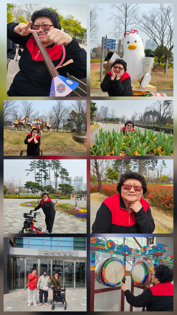 2026.3.27(금) 주간활동서비스 2그룹 활동진행 페이지 정보 조회 : 3회 작성일 26-03-27 15:53 SNS 공유 : 본문 오전 보석십자수(파츠붙이기) 오후 시민공원(국악체험관 관람 및 공원 산책) 이전글2026.3.27(금) 주간활동서비스 9그룹 활동진행 26.03.27 다음글2026. 3. 26(목)주간활동서비스 4그룹 활동진행 26.03.26 목록