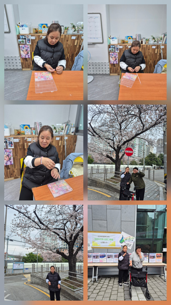 2026.4.1(수) 주간활동서비스 3그룹 활동진행 페이지 정보 조회 : 2회 작성일 26-04-01 16:14 SNS 공유 : 본문 오전 비즈공예, 주변산책 오후 하나로마트 다이소 이전글2026.4.1(수) 주간활동서비스 9그룹 활동진행 26.04.01 다음글2026. 3. 31(화)주간활동서비스 8그룹 활동진행 26.03.31 목록