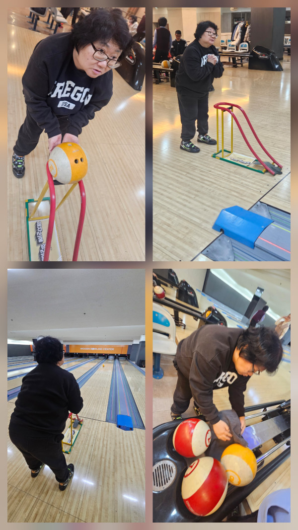 내일 요리교실을 위해 장을보러 마트를 갔습니다. 요리재료부터 과일과 기타 식재료까지 이것저것 살펴보며 이름도 익혀보고 이용자가 모르는 물품을 가르쳐주기도 하면서 오전시간을 알차게 보냈어요. 오후 볼링교실은 이용자분이 너무너무 잘쳐서 총점이 80점가까이 되었어요! 요 몇 주 저조한 성적으로 의기소침해져 있었는데 오늘 스트라이크도 치고 성적이 좋아 끝날때쯤 엄청 활짝 웃었답니다~ 행복한 하루 보내고 하원하였어요!!