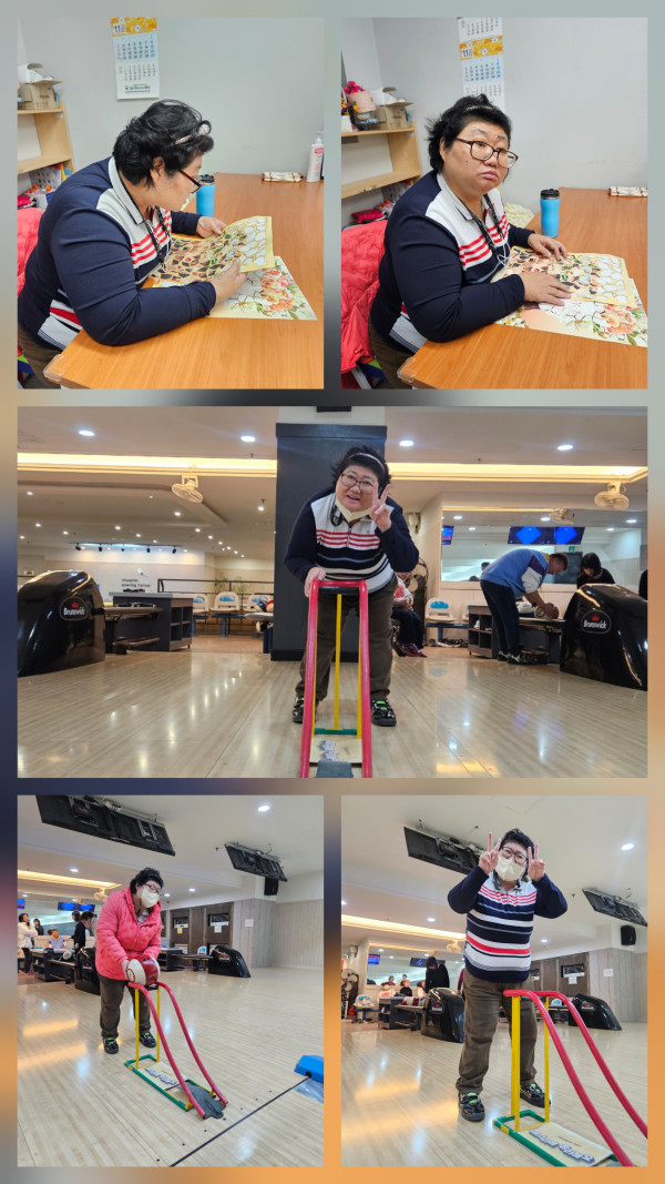 볼링치는 재미에 푹빠진 이용자분은 오늘도 열심히 최선을 다해 투구를 하였습니다. 볼링공을 제대로 굴려보기위해 각도를 이리저리 맞추며 최선을 다했어요. 다리가 불편하지만 그래도 중심을 잡으며 볼링을 치는 모습이 정말 멋지고 대단하게 느껴집니다♡