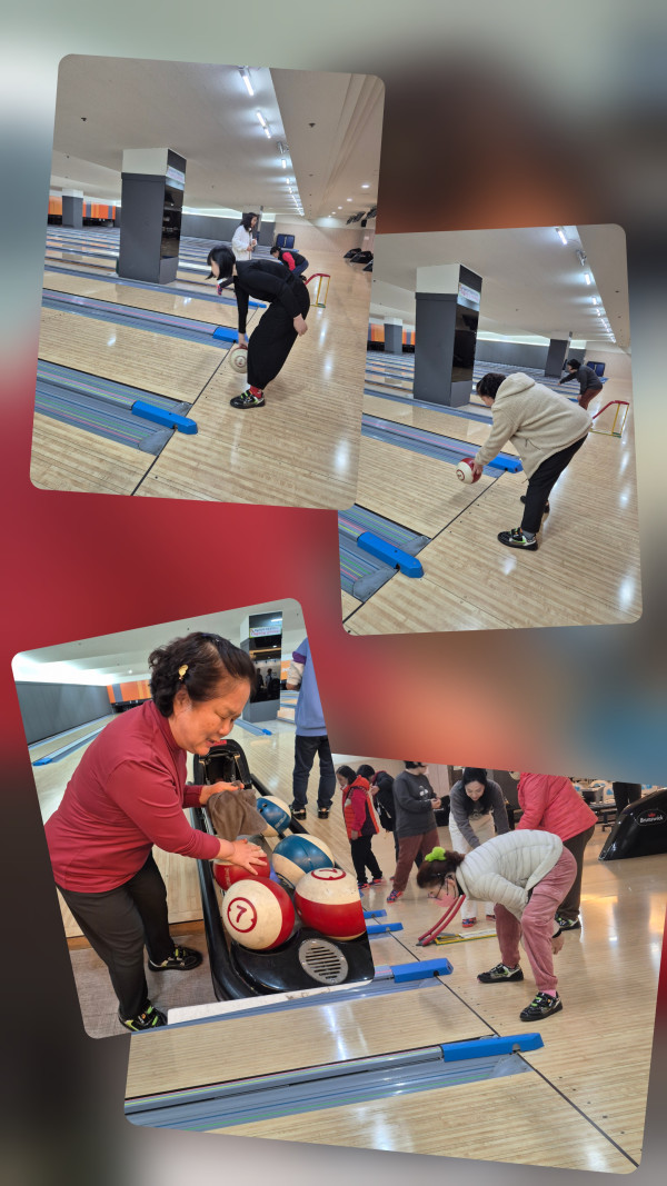 2025.11.24(월)주간활동서비스 1그룹 활동진행 페이지 정보 조회 : 1회 작성일 25-11-24 16:52 SNS 공유 : 본문 오전 벨리댄스 신나는 음악에 맞춰 신체운동및 스트레칭하기 하고 오후 볼링장에서 게임했어요 오늘은 스트라이크와 스페어처리까지 다들 컨디션이 좋았어요 이전글2025. 11. 24(월)주간활동서비스 4그룹 활동진행 25.11.24 다음글2025.11.22.(월)주간활동서비스 5그룹 활동진행 25.11.24 목록