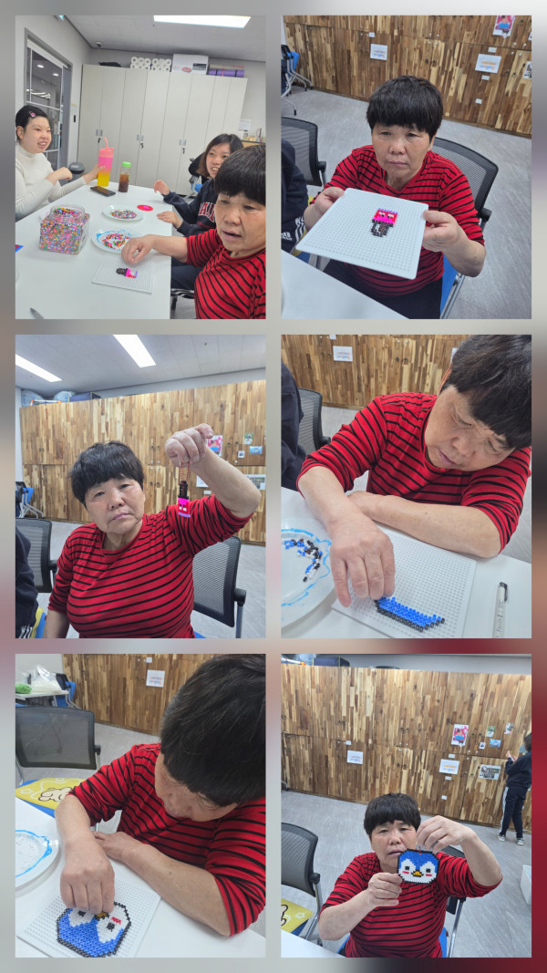 2026.4.9(목)주간활동서비스 7그룹 활동진행 페이지 정보 조회 : 5회 작성일 26-04-09 15:50 SNS 공유 : 본문 오전 : 실내활동(컬러비즈 만들기)오후 : 노래교실(본인 애창곡 부르면서 스트레스 해소) 이전글2026.4.9.(목)주간활동서비스 5그룹 활동진행 26.04.09 다음글2026.4.9(목) 주간활동서비스 3그룹 활동진행 26.04.09 목록