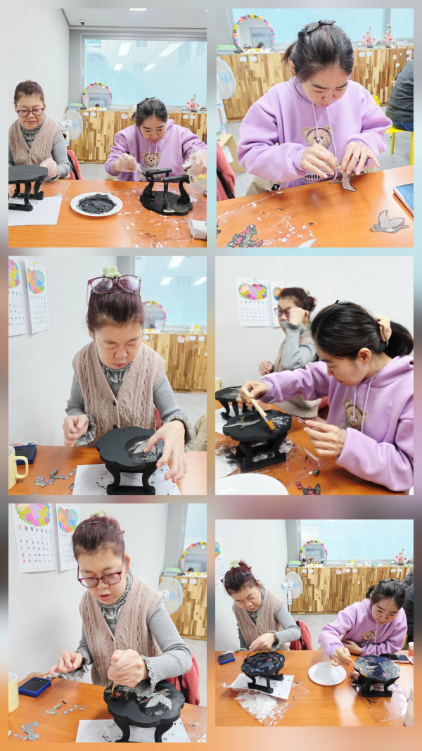 미니 찻상 만들기 지난 시간에 이어 냅킨 그림 오려 붙이기와 마감제까지 칠하기 완성했습니다.