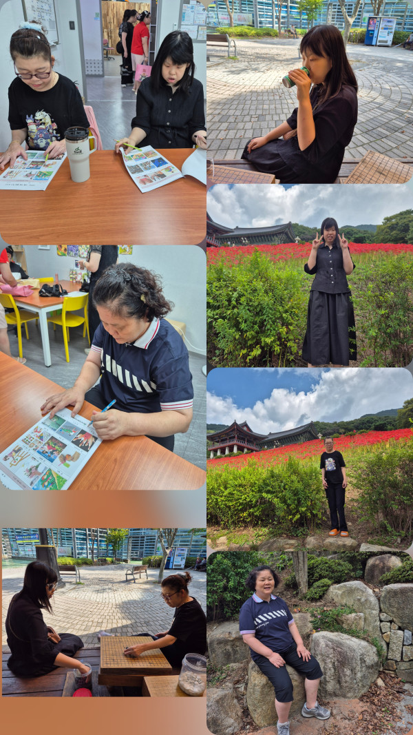 2025.9.29(월)주간활동서비스 1그룹 활동진행 페이지 정보 조회 : 5회 작성일 25-09-29 15:19 SNS 공유 : 본문 오전 욕구조사후 운수사 절정인 꽃무릇 구경하고 서당골공원에서 티타임 가지며 주말지낸 이야기 나누었어요 오후 볼링장에서 게임하며 여가시간 보냈어요 이전글2025.9.29.(월)주간활동서비스 5그룹 활동진행 25.09.29 다음글2025.9.29(월) 주간활동서비스 3그룹 활동진행 25.09.29 목록