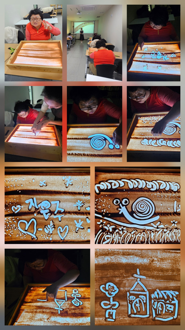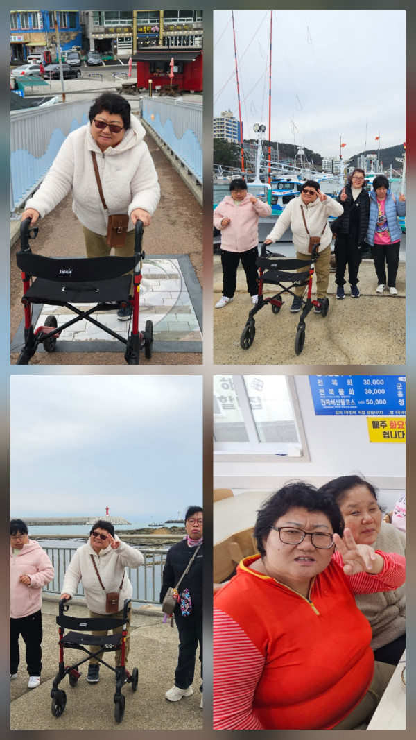 탁 트인 시야, 파도에 일렁이는 물결, 햇살에 반사되는 물의 반짝임, 물살을 헤치고 다니는 물고기들, 짭쪼름한 향.. 부산에서 살아도 매번 보는 바다의 모습은 뻔하지 않는 풍경과 색다른 재미를 줍니다. 오늘 간 기장의 바다도 그러했어요. 모두 내리자마자 '바다다!!!'를 외치는 우리 이용자분들~ 해녀들이 잡은 신선한 해산물들도 보고 미역도 보고 바다와 배를 가까이 보기위해 다리도 건너보며 기장바다의 모습을 오롯이 가슴에 담고 왔답니다. 따뜻한 전복죽을 먹고 살짝 몸을 녹인다음 오후 프로그램으로 샌드아트를 하러 갔어요. 강사님의 소개와 샌드아트의 유래에 대에 짧게 듣고 샌드아트를 시작했습니다. 처음에는 다소 경직되어 손에 힘을 많이 주었으나 시간이 지나고 적응하면서 점점 더 예쁜 그림을 완성 시킬 수 있었어요. 피카소 뺨치는 창작물들을 보여주시기도 하셔서 보면서 감탄 또 감탄했답니다. 다시 오고 싶다고 말씀하시는 우리 이용자분들~ 오늘도 모두 즐거운 시간 보내고 돌아왔습니다! :)