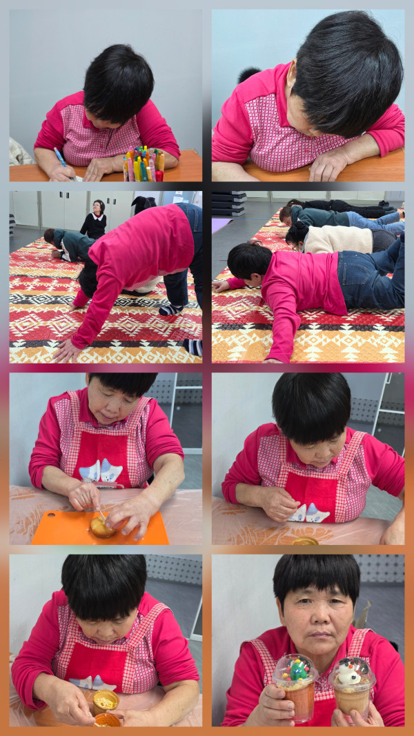 2025.12.23(화) 주간활동서비스7그룹활동진행 페이지 정보 조회 : 3회 작성일 25-12-23 21:45 SNS 공유 : 본문 오전 어댑핏 및 생일카드 꾸미기 오후 크리스마스 케잌 만들기 이전글2025. 12. 23(화)주간활동서비스 4그룹 활동진행 25.12.24 다음글2025.12.23(화)주간활동서비스 1그룹 활동진행 25.12.23 목록