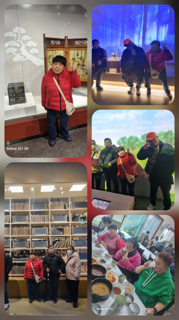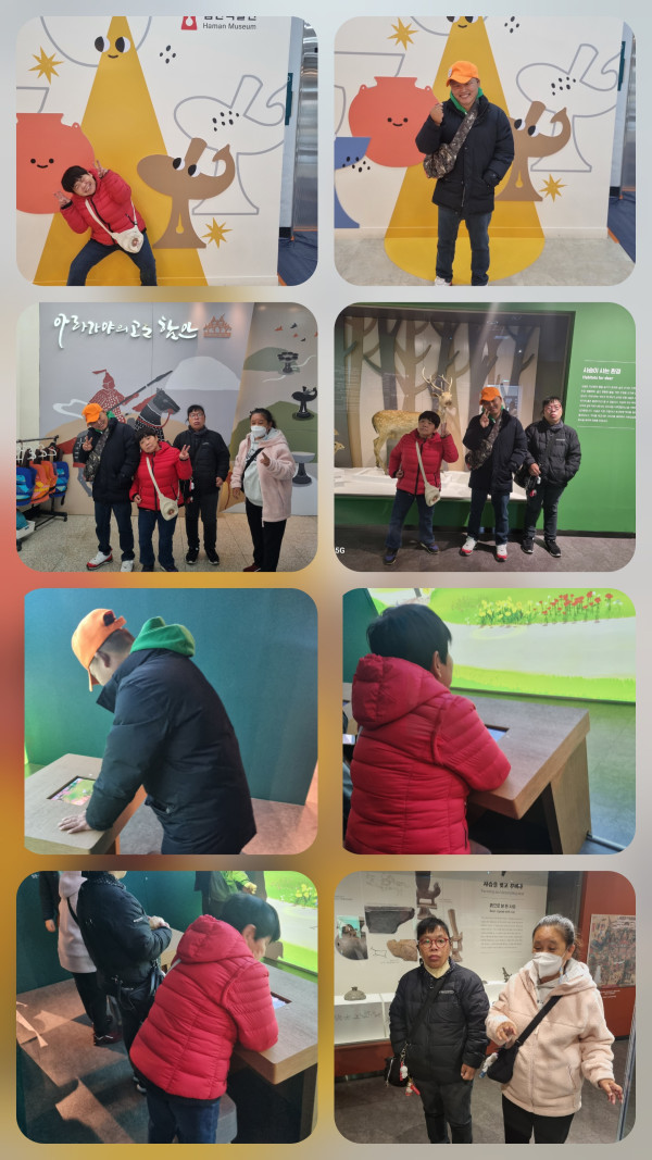 2025. 11. 20(목)주간활동서비스 4그룹 활동진행 페이지 정보 조회 : 2회 작성일 25-11-20 17:49 SNS 공유 : 본문 오전오후 함안말이산고분군과 함안박물관을 방문하여 이름모를 왕들의 고분을 둘러보고 가을의 경치를 느끼며 다양하게 전시되어 있는 박물관 관람하고 체험부스에서 체험해보는 활동도 하고 맛있는 점심도 먹고 힐링하고 왔어요 이전글2025.11.20(목)주간활동서비스 1그룹 활동진행 25.11.20 다음글2025.11.20.(목)주간활동서비스 5그룹 활동진행 25.11.20 목록