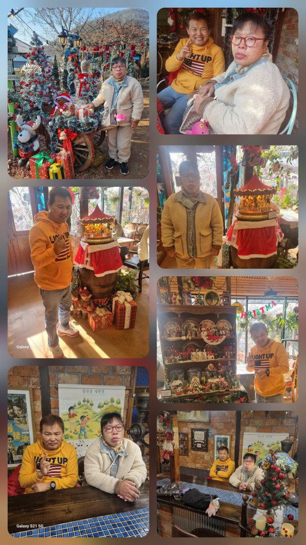 오후 크리스마스 트리와 장식구로 꾸며 놓은 카페에서 사진도 찍고 차도 마시고 즐거운 시간 나누고 왔어요