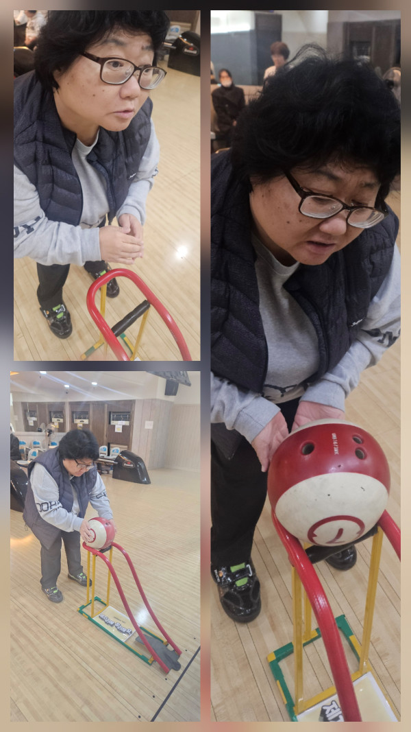 오후는 볼링을 치러갔는데 매번 보행이 불편한 이용자분의 손을 잡아주다가 오늘은 혼자서 천천히 왔다갔다 해볼 수 있도록 하였습니다. 균형을 잃을 때를 대비해서 옆에서 지켜보았는데 한번도 균형을 잃지 않고 잘 와주었어요~ 볼링도 처음에는 공이 사이드로 굴러가서 속상해하였으나 후반에는 스트라이크도 치고 점수도 제법 잘 나와서 너무나 만족해 하였습니다. 즐겁게 활동하고 돌아왔습니다♡