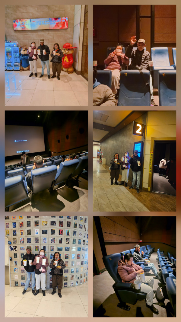 2025.12.10(수)주간활동서비스 6그룹 활동진행 페이지 정보 조회 : 115회 작성일 25-12-11 16:39 SNS 공유 : 본문 오전 노래교실 오후 영화관람(쥬토피아2) 이전글2025.12.10(목)주간활동서비스 6그룹 활동진행 25.12.11 다음글2025.12.11.(목)주간활동서비스 5그룹 활동진행 25.12.11 목록