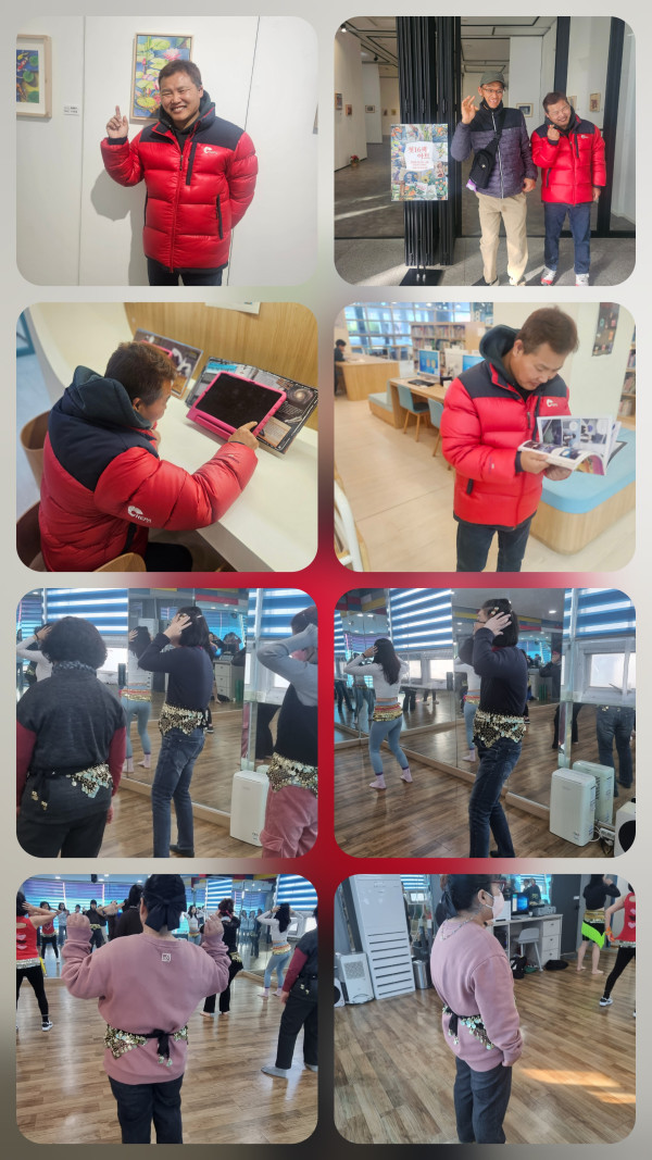 2025. 12. 12(금)주간활동서비스 4그룹 활동진행 페이지 정보 조회 : 121회 작성일 25-12-12 19:16 SNS 공유 : 본문 오전 밸리댄스 이용자들은 밸리댄스로 유연성을 기르고 다른이용다는 부산도서관에서 전시 관람하고 보고 싶은 책도 보고 왔어요 오후에는 다양한 재료를 이용하여 전등으로도 꾸미고 예쁜 크리스마스트리를 만들고 왔어요 이전글2025.12.15(월) 주간활동서비스 3그룹 활동진행 25.12.15 다음글2025.12.12(금) 주간활동서비스 2그룹 활동진행 25.12.12 목록