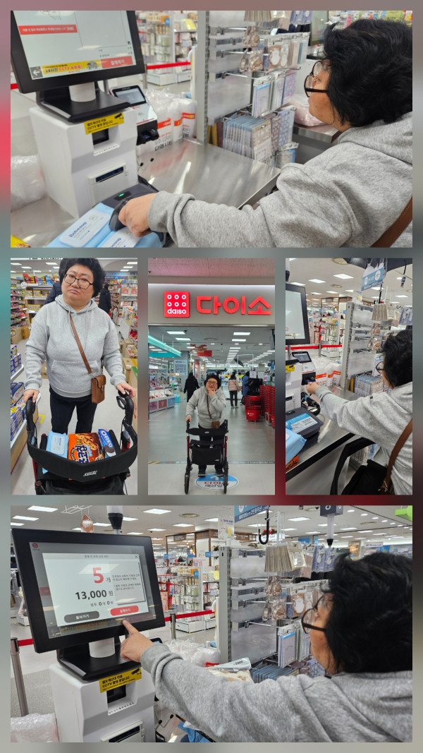 이번주 동료 2명의 생일파티가 있어 선물구입하러 다이소를 가보았습니다. 동료가 좋아하고 꼭 필요한 물품들을 신중하게 고르는 모습이었어요. 물품과 함께 줄 간식도 구입한뒤 센터로 돌아왔습니다. 오후에는 볼링교실에서 볼링을 쳤는데 기본적으로 7개씩은 맞추며 향상된 실력을 보여주었어요~ 오늘도 즐거운 하루보내고 돌아왔습니다♡
