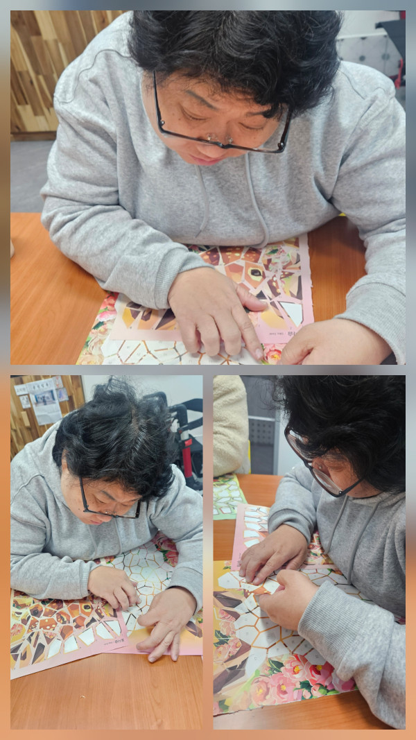 화요일 오전은 원래 어댑핏이 있는 날인데 강사선생님의 개인적인 사정으로 어댑핏을 하지 못했습니다~ 오전에는 날씨도 쌀쌀하여 실내에서 스티커모자이크 활동을 했어요. 꾸준히 조금씩 스티커모자이크를 하니 확실히 실력이 늘고있어요. 숫자도 잘찾고 모양도 바꿔가며 잘 붙이는 모습이 보였답니다.