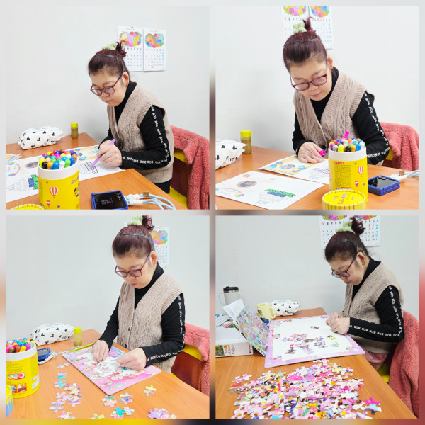 생일카드 만들기와 이용자가 좋아하는 티니핑 대형퍼즐 맞추기 활동 진행했습니다.