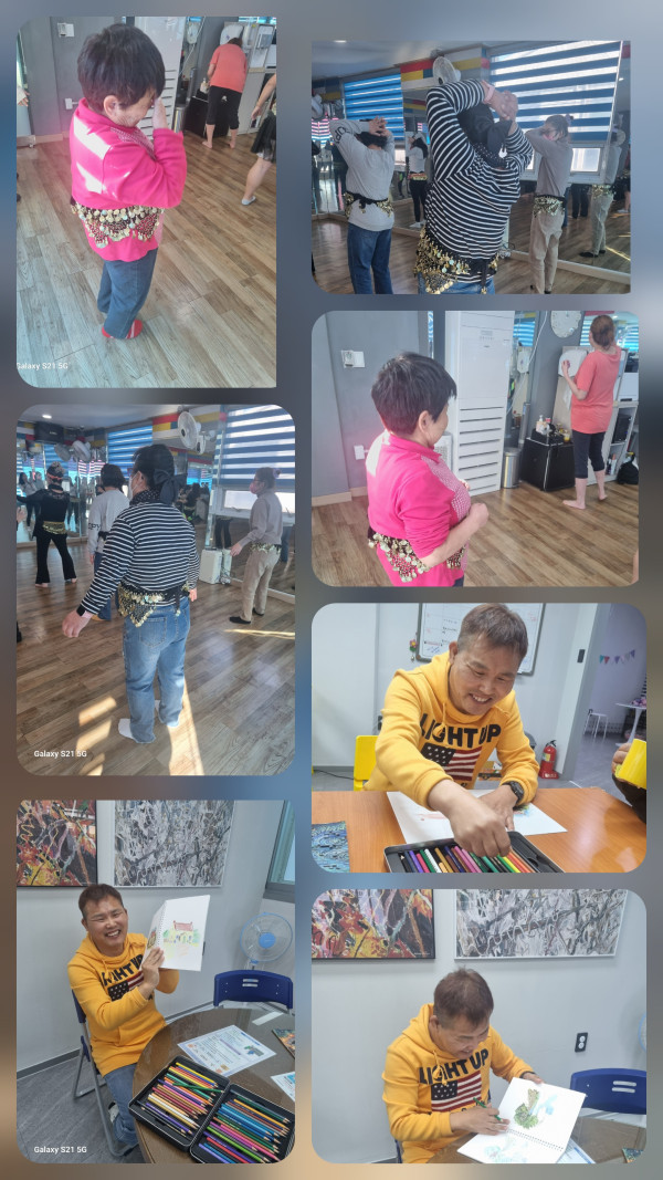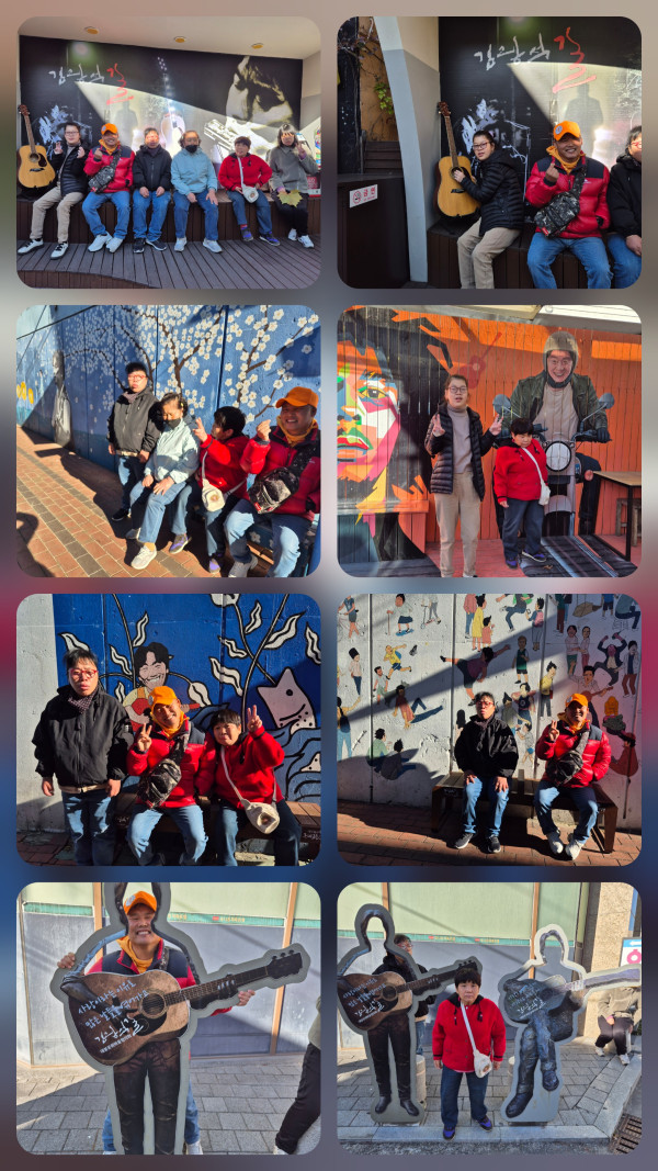 2025. 11. 21(금)주간활동서비스 4그룹 활동진행 페이지 정보 조회 : 2회 작성일 25-11-21 20:27 SNS 공유 : 본문 오전 밸리댄스로 유연성을 기르고 다른이용자는 색연필로 어반스케치를 그리는 활동을 하였습니다 오후에는 대구 유명한 김광석거리에 가서 노래를 들으면서 꾸며 놓은 거리를 걸으며 사진도 찍고 가수처럼 포즈도 잡아 보고 즐거운 시간을 보내고 왔어요 이전글2025.11.21(금) 주간활동서비스 2그룹 활동진행 25.11.21 다음글2025.11.21(금) 주간활동서비스 3그룹 활동진행 25.11.21 목록