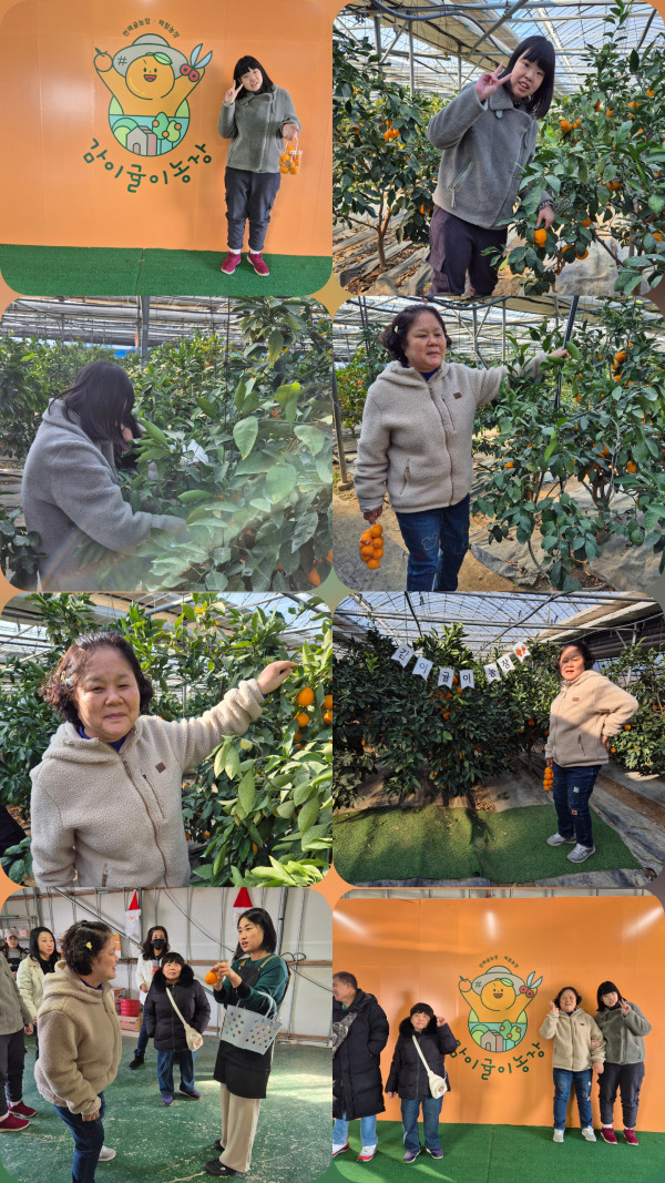 2025.12.10(수) 주간활동서비스 1그룹 활동진행 페이지 정보 조회 : 123회 작성일 25-12-10 17:21 SNS 공유 : 본문 오전 노래교실 수업에 참여하여 즐겁게 좋아하는 노래 부르고 신나게 춤도 추었어요 오후 감귤따기 체험 했어요 농장에서 귤나무도 구경하고 맛도 보고 사진도 찍고 즐거운 시간 보냈어요 이전글2025.12.10(수) 주간활동서비스 7그룹활동진행 25.12.10 다음글2025.12.10.(수)주간활동서비스 5그룹 활동진행 25.12.10 목록