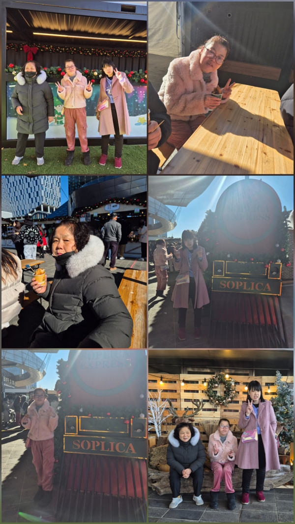 2025.12.4(목)주간활동서비스 1그룹 활동진행 페이지 정보 조회 : 178회 작성일 25-12-04 18:13 SNS 공유 : 본문 크리스마스 빌리지 방문하여 다양한 크리스마스 용품 구경하고 다양한 먹거리도 골라 먹어보고 여러 포토존에서 진도 찍었어요 이전글2025. 12. 4(목)주간활동서비스 4그룹 활동진행 25.12.05 다음글2025.12.4(목) 주간활동서비스 2그룹 활동진행 25.12.04 목록
