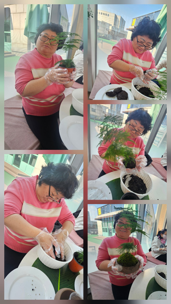 노래교실에서 신나고 흥겨운 노래로 또 하루가 시작되었어요~ 우리 이용자분은 다른 이용자분들의 노래도 따라부르고 블링블링을 부르며 신나게 즐기셨어요! 오후에는 꽃꽂이 시간이 있었는데요, 아스파라거스를 식재해보았답니다. 우리가 흔히 알고 먹는 식용 아스파라거스가 아닌 관상용 아스파라거스로 고사리과에 속한다고 해요. 그리고 잎처럼 생긴부분이 잎이 아닌 줄기이고 줄기로 광합성 작용을 한다는 새로운 사실도 알게 되었답니다! 식재는 코케다마 형식으로 심었는데 젖은 흙을 뿌리부분에 둥글게 공처럼 말아서 이끼로 덮고 통풍이 잘되게 난석을 깐뒤 올려주는 방식이었어요~ 싱그러운 식물을 보며 힐링하고 오늘하루 마무리 하였습니다:)