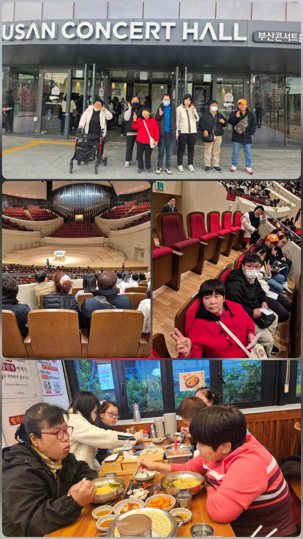 2025.11.27(목)주간활동서비스 1그룹 활동진행 페이지 정보 조회 : 10회 작성일 25-11-27 17:52 SNS 공유 : 본문 오전 오르간연주 콘서트 관람했어요 자주 듣던 캐롤송과 귀에익은 피아노곡도 오르간으로 연주하니 웅장하고 장엄한 분위기가 났어요 레고를 조립하여 우리나라 전통 춤을 추는 인형으로 만든 레고전시도 관람했어요 이전글2025. 11. 27(목)주간활동서비스 4그룹 활동진행 25.11.27 다음글2025.11.27(목) 주간활동서비스 2그룹 활동진행 25.11.27 목록