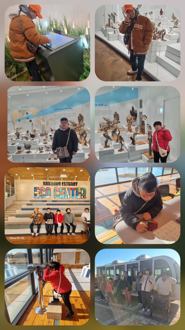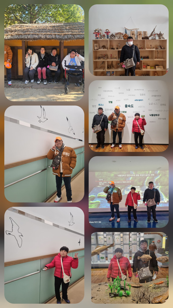 2025. 11. 28(금)주간활동서비스 4그룹 활동진행 페이지 정보 조회 : 12회 작성일 25-11-28 20:06 SNS 공유 : 본문 오전 밸리댄스로 유연성을 기르고 다른이용자는 다이소로 나들이 나가 필요한 물건 구경하고 오후에는 낙동강에코센터에서 을숙도 철새들에 대해 알아보고 다양한 체험도 하고 왔어요 이전글2025.12.1(월) 주간활동서비스 3그룹 활동진행 25.12.01 다음글2025.11.28(금) 주간활동서비스 2그룹 활동진행 25.11.28 목록