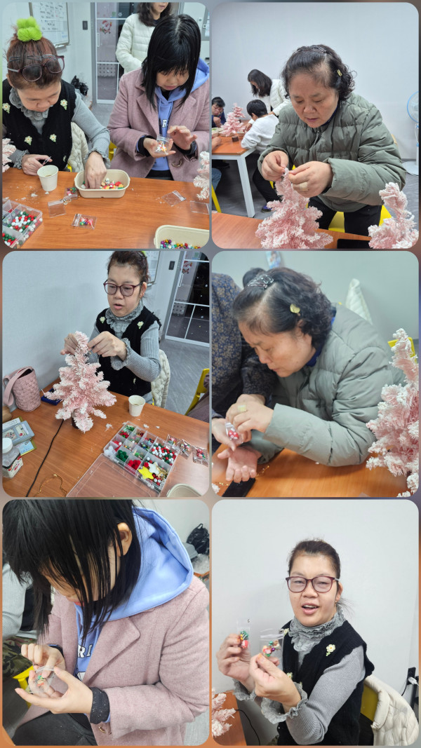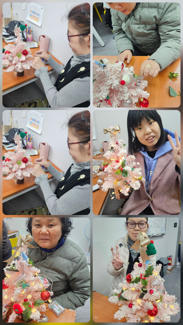 2025.12.2(화)주간활동서비스 1그룹 활동진행 페이지 정보 조회 : 4회 작성일 25-12-02 17:36 SNS 공유 : 본문 오전 벨리댄스 수업 참여 새로운 음악과 동작익히기 힘들어도 열심히 하였어요 오후 구매한 트리나무에 다양한 재료로 나만의 크리스마스 트리 나무 만들기 했어요 전구에 불이 들어오니 너무 이쁜 트리가 되었어요 이전글2025.12.2(화) 주간활동서비스 2그룹 활동진행 25.12.02 다음글2025.12.2.(화)주간활동서비스 5그룹 활동진행 25.12.02 목록