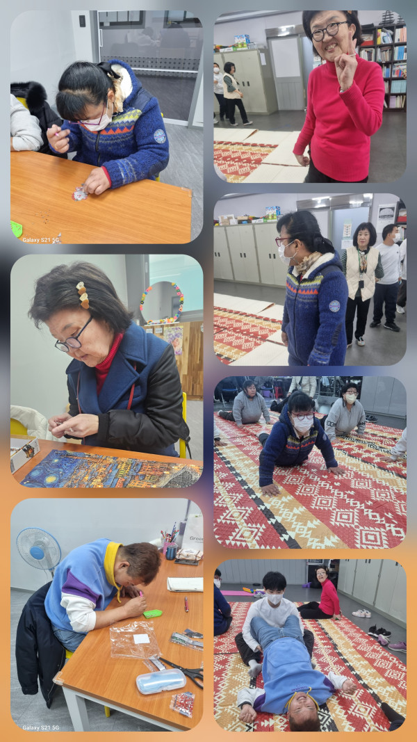 2025. 12. 2(,화)주간활동서비스 4그룹 활동진행 페이지 정보 조회 : 4회 작성일 25-12-03 10:46 SNS 공유 : 본문 오전 키링보석십자수와 퍼즐 맟추기 활동을 하고 어댑핏활동으로 근럭을 키우고 오후 다양한 재료와 조명을 이용하여 트리만들기 활동을 했어요 이전글2025.12.3(수) 주간활동서비스 3그룹 활동진행 25.12.03 다음글2025.12.2(화) 주간활동서비스 2그룹 활동진행 25.12.02 목록