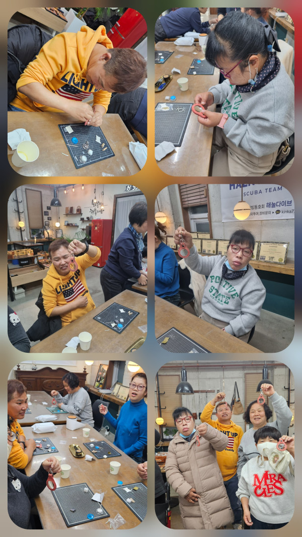 2025. 12. 3(수)주간활동서비스 4그룹 활동진행 페이지 정보 조회 : 2회 작성일 25-12-03 22:39 SNS 공유 : 본문 오전 노래교실에서 새로운 노래를 배워보고 각자 신청곡 불러보고 오후에는 가죽공예로 가죽을 이용하여 돋보기 키링을 직접 바느질해서 만들어 보는 활동을 하고 왔어요 이전글2025.12.3(수) 주간활동서비스 2그룹 활동진행 25.12.04 다음글2025.12.3(수)주간활동서비스 1그룹 활동진행 25.12.03 목록