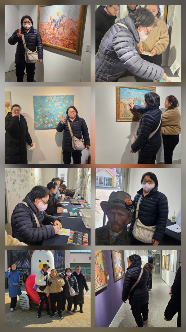 2026. 2. 12(목) 주간활동서비스 8그룹 활동진행 페이지 정보 조회 : 73회 작성일 26-02-12 15:55 SNS 공유 : 본문 오전 밸리댄스 교실에서 신나게 춤을 추며 활기찬 시간을 보냈고,오후 동구 문화플랫폼에서 빈센트 반 고흐 작품을 관람하며 예술적 감성을 나누는 뜻깊은 시간을 가졌습니다 이전글2026.2.12(목) 주간활동서비스 1그룹 활동진행 26.02.12 다음글2026. 2. 11(수)주간활동서비스 4그룹 활동진행 26.02.11 목록