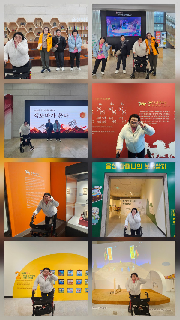 울산 북구에 현대자동차 공장의 발전과 역사를 볼 수 있는 전시장이 있어 오늘은 울산으로 활동을 가보았어요. 전시장에 들어서면 가장 먼저 자동차의 역사적인 의미를 지닌 이야기를 볼 수 있어요. 71년 현대 뉴 코티나 발표회 사진, 포니차 로고 및 도면, 수출 선적 중인 현대 PB 및 에어로버스, 포니 엑셀 1호차 사진 등 현대차의 첫 독자생산 모델 포니와 시대의 흐름을 보여주는 차량들과 함께 전기차 아이오닉도 전시되어 있어요. 가난이 당연시되던 시절의 울산공장은 '잘 먹고 잘 살수있는' 꿈의 공장 이었다고 하여 전시관의 흐름 오래된 미래, 꿈의 시작, 꿈의 실현이라는 순서로 구성되어 있답니다. 전시장이 크지는 않지만 현대자동차와 그 자동차들이 만들어지는 공장의 역사를 한눈에 볼 수 있어 뜻깊었어요~ 인근에서 맛있게 해물칼국수를 먹은 뒤 울산시립박물관으로 갔습니다. 여기에는 병오년 테마 전시 '적토마가 온다'라는 기획전시가 열리고 있었는데요, 우리 문화와 울산의 역사 속에서 말이 지닌 상징적 의미를 살펴볼 수 있었어요. 운송수단 말은 각종 유물을 통해 다양한 말의 모습과 운송수단이 발달하기 이전 말의 역할에 대해, 신이된 말에서는 전통 민속과 종교에서 신으로서 말이 가지는 역할을 소개하고 있었습니다. 옆의 장소로 이동하니 '울산 할머니의 보물상자'라는 울산의 자연과 민속을 5가지 보따리로 푸는 형식으로 꾸며 놓았어요.
