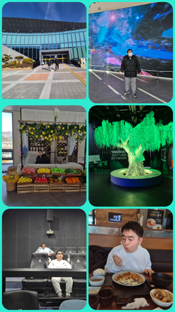 오전에는 네이처 에코리움을 갔습니다. 자연과 기술의 조화로움을 감상하였습니다.오후에는 밀양 한천 박물관에서 케이크와 젤리 만들기를 하였습니다.
