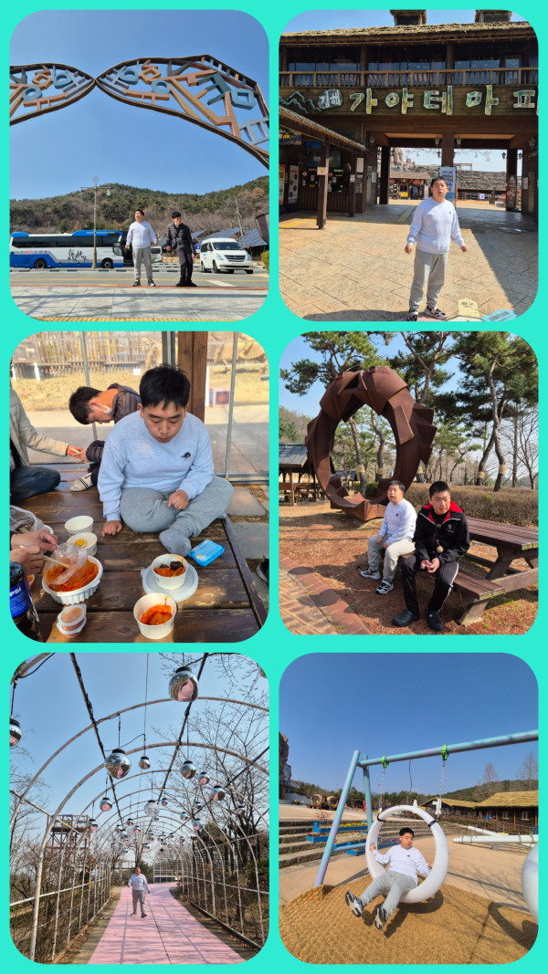오후에는 김해 테마파크를 다녀왔습니다. 테마 별 다양한 볼거리와 봄 꽃들을 구경하였습니다.