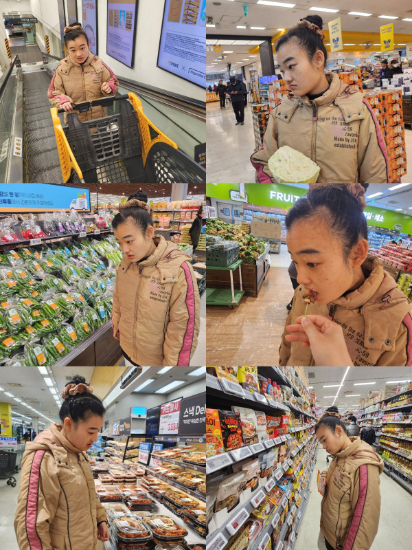 즉석식품코너에서는 맛있는 냄새를 맡고 먹고싶은듯 아련한 눈빛을 보내기도 했습니다