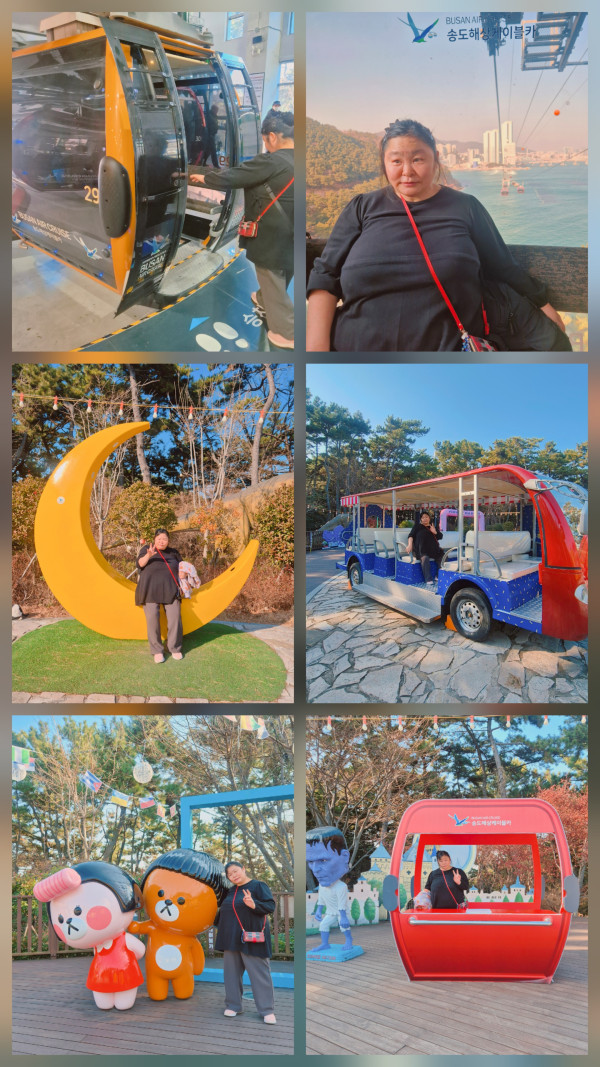 오후에 송정 케이플카를 타고 전망대에 올라가서 다양한 조형물과 같이 사진을 찍는 활동을 하였습니다