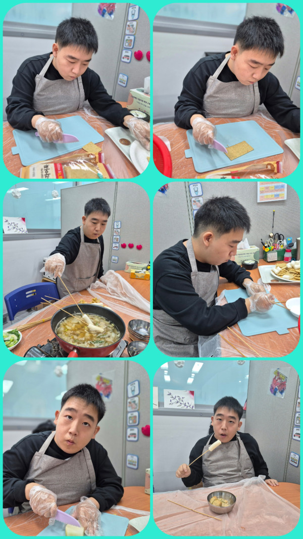 오전에는 어묵 탕 만들기 요리 활동을 하였습니다. 대파,양파,어묵,곤약,가래떡,무우 등을 적당한 크기로 썰어보고 직접 냄비에 넣어 보기도 하였습니다.