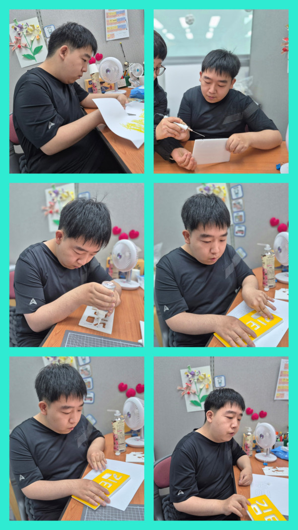 오전에는 우드락을 이용하여 퍼즐 만들기를 하였습니다. 이용자의 이름을 퍼즐로 만드는 활동을 통해 소근육의 발달과 손과 눈의 협응력을 높이는 활동을 진행하였습니다.