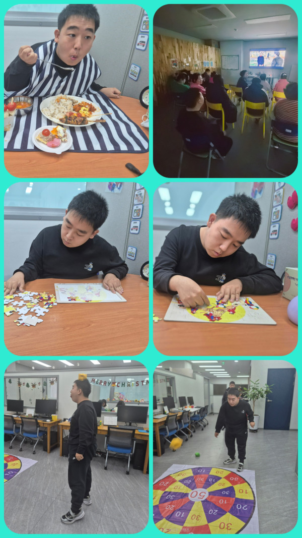 오후에는 영화도 보고 퍼즐,레크레이션도 진행하였습니다.