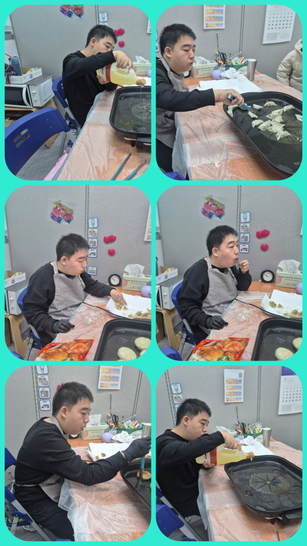 오전에는 요리 활동으로 군만두를 하였습니다. 여러가지 만두를 팬에 구워보았습니다.