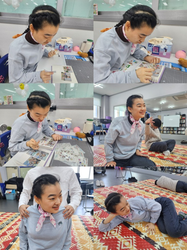 앨범에 사진과 스티커를 붙여 예쁘게 꾸며보고